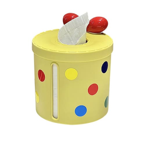 Material: plástico Peso: 450 g Tamanho: 13,5 x 16 cm Design brilhante de bolinhas — apresenta pontos multicoloridos alegres em um corpo amarelo pastel, perfeito para adicionar um toque decorativo inspirado na dopamina à sua mesa, banheiro ou sala de estar. Estrutura de grande capacidade — mede 13,5 x 16 cm, ideal para guardar rolos higiênicos padrão ou guardanapos empilháveis, oferecendo conveniência para áreas de tráfego intenso. Material plástico durável — Feito de plástico leve e resistente para uso a longo prazo em vários ambientes internos, como balcões de banheiro ou mesas de escritório. Dispensador Top Pull com tampa — Dispensa lenços lisos através da abertura circular com uma tampa segura, ajudando a manter os lenços limpos e de fácil acesso. Estilo versátil e fofo — combina design funcional com um visual adorável, adequado para temas de decoração modernos, divertidos ou minimalistas.