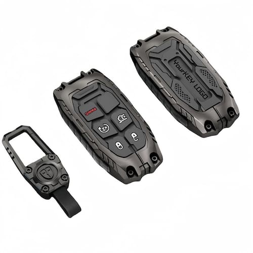 Acessório para Jeep - Design afiado: com sua combinação elegante de liga de zinco e elementos elegantes, nossa capa para chaveiro não apenas oferece proteção, mas também adiciona um visual moderno e legal às suas chaves. Destaque-se com este acessório moderno. - Produção de molde de precisão 1: 1: projetada usando um molde preciso 1: 1, nossa capa garante um ajuste perfeito para o seu chaveiro. Este ajuste exato garante fácil instalação e proteção segura sem comprometer a funcionalidade. - [Sinal ininterrupto] Desfrute da funcionalidade impecável do chaveiro com nossa capa que garante interferência zero de sinal, oferecendo travamento e desbloqueio remoto sem costura sempre. - [Proteção de liga de zinco] Feita de liga de zinco durável, nossa capa oferece proteção superior contra arranhões, quedas e desgaste diário, mantendo seu chaveiro em excelentes condições. - Botões luminosos de silicone: a capa possui botões de silicone que brilham no escuro, facilitando encontrar e usar seu chaveiro em condições de pouca luz. Este recurso adiciona conveniência e melhora a visibilidade à noite.