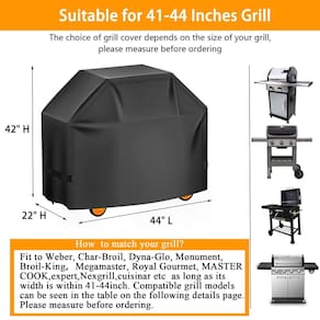 capa para churrasqueira - ?Dimensão?- C x L x A: 112 x 56 x 106 cm, serve na maioria das grelhas de 2 e 3 bocas com prateleiras laterais de até 111 cm de largura. A escolha da tampa da grelha depende do tamanho da sua churrasqueira. Certifique-se de medir sua grelha antes de comprar. - ?Tiras de fecho aderente ajustáveis e corda na bainha?- o uso de gancho e laço ajustável e corda de bainha elástica pode envolver a tampa da grelha firmemente na sua grelha, o que pode efetivamente evitar que a capa da grelha seja soprada pelo vento. - ?Impermeável, à prova de neve e anti-UV? - Feita de tecido atualizado, a capa da grelha apresenta resistência à cor superior, resiste aos raios UV, repele a chuva, resiste a rasgos e rachaduras frias, durável e duradoura, dá à sua churrasqueira proteção durante todo o ano contra sol, chuva, neve, granizo, vento, poeira, sujeira e etc. - ?Observação? - Para proteger sua churrasqueira e exaustor, tome estas precauções. ? Recomenda-se limpar e limpar com um pano e depois secar ao sol. Não limpe na máquina de lavar e secadora. ?. Por favor, cubra a grelha após a grelha esfriar e mantenha longe do fogo. ?Por favor, cuide das bordas afiadas da sua grelha para evitar que a tampa da grelha seja danificada pela sua grelha. - ?Use com confiança?- Oferecemos um ótimo atendimento ao cliente. Se você tiver algum problema, e agilizaremos a resolução do problema. resolveremos o problema online para você.