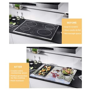 Capa protetora superior de fogão elétrico, capas de fogão para fogão elétrico, protetor de fogão, cobertura superior para protetor de fogão de vidro elétrico Tabela de tamanhos: 61 x 53 cm (24 x 21 polegadas) 72,4 x 52 cm 78,7 x 61 cm 91,4 x 53,3 cm Lista de pacotes 1 x tampa superior do fogão. 2 ganchos Tampa superior do fogão de proteção Proteja a superfície de vidro ou cerâmica de arranhões, poeira, arranhões, gordura e sujeira. Alivia sua preocupação em danificar seu novo cooktop Espaço extra no balcão O tamanho perfeito cobre todo o fogão Dê a você espaço extra para preparar alimentos quando o fogão não estiver em uso Material premium A parte superior é uma camada de tecido de poliéster de alta qualidade e a parte inferior é de borracha, que é impermeável, antiderrapante, dobrável e durável. Não se moverá quando você preparar comida nela. Resistente ao calor Suporta temperaturas de até 200°C Como colchão com isolamento térmico para proteger a superfície da mesa da cozinha Como tapete de passar a ferro temporário e tampa superior da arruela Armazenamento dobrável e fácil Nossa capa de fogão pode dobrar ou enrolá-la e guardá-la em seu armário ou armário quando não estiver em uso. 2 furos para pendurar facilmente Fácil de limpar e lavável na lava-louças. Limpe com um pano molhado Coloque na máquina de lavar louça Uso amplo Pode ser utilizado como cobertura de fogão, tapete de bancada, tapete de engomar, tampa de lavadora, tapete de café, capa de forno de topo plano, tampa de topo para secadora, capa de forno, tampa de geladeira, tapete de borracha extra grande - Tampa superior protetora do fogão elétrico: Estas capas de fogão são cuidadosamente projetadas para fornecer proteção para o topo do seu fogão elétrico, proteger a superfície de vidro ou cerâmica contra poeira, arranhões, gordura e sujeira. Não só oferece praticidade e funcionalidade, mas também adiciona um toque de elegância à sua cozinha com seus belos padrões - Espaço extra grande no balcão: tampa de fogão com um tamanho grande de 61 x 53 cm, esta tampa antiderrapante para fogão é compatível com a maioria dos fogões de dois bocas, tampas de fogão para fogão elétrico, fornecendo espaço adicional no balcão para preparação de alimentos e expandindo espaço de armazenamento adicional para itens - Resistente ao calor até 204 °C: Nossa tampa de vidro para cooktop é projetada com borracha de alta resistência ao calor, permitindo suportar temperaturas de até 200 °C. Ele não apenas protege a superfície da mesa da sua cozinha como uma almofada isolante térmica, mas também funciona como um tapete de passar roupa temporário conveniente e tampa superior da lavadora - Tapete de cobertura de fogão de alta qualidade: esta tampa de fogão de vidro é feita de borracha natural de alta qualidade, macia, impermeável, resistente ao calor, camada antiderrapante. Nossa tampa de fogão elétrico é fácil de limpar, basta limpá-la com um pano úmido ou lavar na máquina. Também é dobrável para armazenamento conveniente em seu armário ou armário - Design da tampa do fogão elétrico: esta tampa do fogão vem com 2 ganchos, os ganchos são úteis para pendurar a tampa do fogão na parede, proporcionando armazenamento simples quando não estiver em uso ou protegendo a parede da cozinha de respingos de óleo