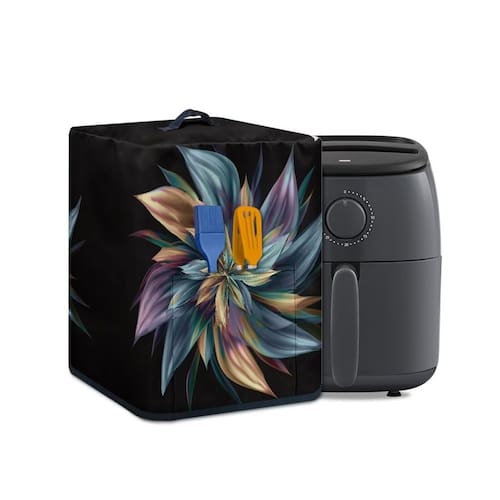 Capa para fritadeira a ar em fibra de poliéster, protege contra poeira, respingos, corrosão e desgaste. Tamanho universal (34x34x42 cm) com bolso frontal para utensílios.Tipo