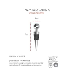Contem:1 Tampa para Garrafa Medidas: 9 x 2 cmMaterial: Aço Inoxidavel e Silicone