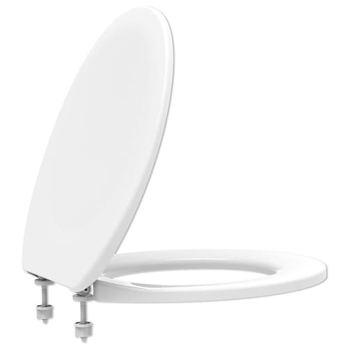 Assento Universal em polipropileno, higiênico e de fácil limpeza, confortável, resistente, com tampa envolvente e superfície brilhante.