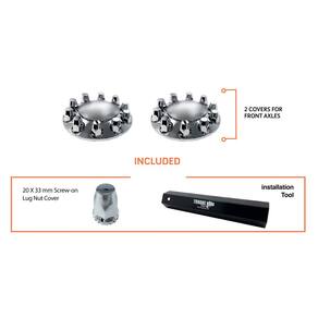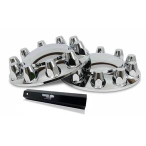Conjunto de 2 kits de capa de roda dianteira cromada com tampas removíveis Ajuste universal: ? Serve para a maioria das aplicações de círculo/centro de parafuso de 29,5 cm (10 furos) ? Serve na maioria das rodas de 50,8 cm, 57,9 cm e 62,9 cm ? Inclui 2 tampas, 2 tampas e 20 tampas de porca rosqueada por kit ? Feito de plástico. - Par de kits de capa de roda dianteira cromada com tampas removíveis - Ajuste universal, serve na maioria das aplicações (10 furos) de 29 cm de círculo/centro de parafusos - Serve na maioria das rodas de 50,8 cm, 57,9 cm e 62,9 cm - Inclui 2 tampas, 2 tampas e 20 tampas de porca por kit - Acabamento – Estrutura de plástico ABS com acabamento cromado