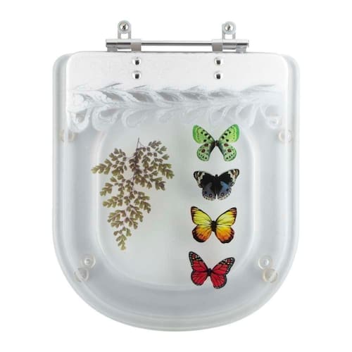 Estilo: A decoração de Borboletas, é uma transparência que fica dentro da resina, não sai e não desbota com a limpeza diária, traz um toque de estilo e individualidade ao banheiro, tornando-o mais bonito e agradável.