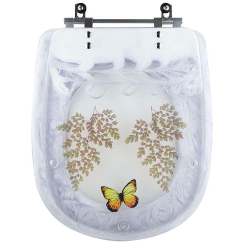 A Tampa De Vaso Acrílico Paris Branco Decorado Borboleta para vaso Ideal Standard é a opção ideal para quem busca combinar funcionalidade com elegância em seu banheiro.
