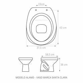 O Assento PEAD é ideal para quem busca um assento mais simples, porém confortável. A peça possui design anatômico e várias opções de cores, fiéis às cores dos vasos sanitários, resultam em uma perfeita composição do ambiente. Assento Sanitário (tampa de vaso) fabricado em polipropileno e polietileno. Resistente, durável, com excelente acabamento e design sofisticado. Fixação regulável para o perfeito encaixe na louça sanitária. Fácil limpeza, é higiênico e não acumula sujeira. O assento é acompanhado por parafusos para instalação e acabamentos. Embalagem dupla reforçada garante o recebimento do produto totalmente protegido. Especificações: - Dimensões da caixa: largura: 50,00cm. Altura: 4,00cm comprimento: 40,00cm - Acabamento: brilhante - Uso: este assento é adequado para uso na louça Santa Clara modelo Alamo - Garantia: 3 meses - Itens inclusos: Tampa e assento, parafusos, acabamentos e embalagem duplamente reforçada. Instalação: posicione o produto, devidamente centralizado, em cima do vaso sanitário. Encaixe os parafusos e encaixe as porcas. Aperte até que o assento esteja firme no vaso. Manutenção: recomendamos a limpeza periódica com pano levemente umedecido com sabão neutro. Não usar esponjas abrasivas ou palha de aço nem qualquer tipo de produto químico.