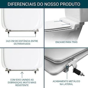 Itens inclusos: produto completo (tampa e assento com ferragem) e embalagem dupla reforçada.