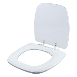 Este Assento Sanitário é produzido com base em MDF, camada de espuma macia e revestimento em vinil plástico brilhante. É muito macio e confortável. A ferragem é metálica em alumínio anodizado e não enferruja.