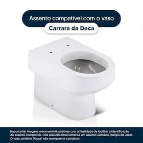 Instalação Simples e Rápida: Com todos os parafusos e componentes necessários inclusos, a instalação é rápida e descomplicada. Seu novo assento estará pronto para uso em questão de minutos. Desenvolvido especificamente para o modelo Carrara da marca Deca, com ou sem caixa acoplada, proporciona um encaixe perfeito, oferecendo estabilidade e conforto durante o uso.