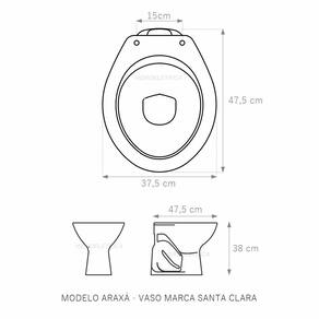 Assento Sanitário (tampa de vaso) fabricado em madeira MDF com pintura laqueada, com proteção raios UV, que garante excelente acabamento e durabilidade. Compatível com vasos (bacias/louças) sanitários com ou sem caixa acoplada. Tem calços de PVC instalados na tampa e no assento para proporcionar estabilidade ao uso, pois distribui o peso uniformemente sobre a louça sanitária. Montagem simples e fácil. Possui ferragem em alumínio anodizado que não enferruja/oxida e oferece muita resistência. O assento é acompanhado por parafusos para instalação. Embalagem dupla reforçada garante o recebimento do produto totalmente protegido. Especificações: - Dimensões da caixa: largura: 51,50cm. Altura: 4,00cm comprimento: 38,00cm - Peso do produto: 1,98kg - Acabamento: brilhante - Uso: este assento é adequado para uso na louça Santa Clara de modelo Araxa - Garantia: 3 meses - Itens inclusos: Tampa e assento com calços de PVC, ferragem inoxidável, embalagem duplamente reforçada. Contém todos os parafusos e encaixes para instalação, sendo necessária somente uma chave de fenda para instalar o produto na louça sanitária. Instalação: posicione o produto, devidamente centralizado, em cima do vaso sanitário. Sem desmontar a ferragem, insira as buchas de borracha dentro dos furos da bacia sanitária. Utilizando uma chave de fenda, aperte o parafuso no sentido horário até que o assento esteja firme no vaso. Manutenção: recomendamos a limpeza periódica com pano levemente umedecido com sabão neutro. Não usar esponjas abrasivas ou palha de aço nem qualquer tipo de produto químico.