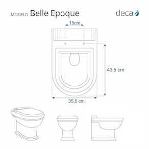 Detalhes e Cuidados Especiais: * Cor: Ébano (Preto) * Compatibilidade: Modelo Belle Epoque da marca Deca * Conteúdo da Embalagem: Assento sanitário, parafusos de fixação e instruções de instalação. * Fabricante do Assento Sanitário: Pontto Lavabo.
