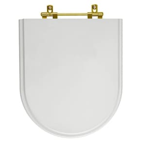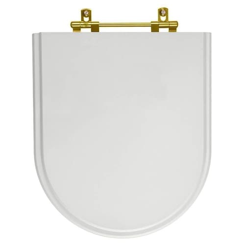 Itens inclusos: assento sanitário em madeira MDF com pintura laqueada com ferragem dourada em alumínio anodizado.