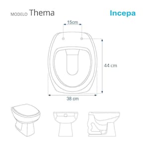 Este assento sanitário é compatível para uso em vaso sanitário Incepa modelo Thema com ou sem caixa acoplada.
