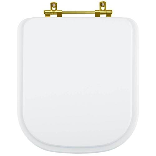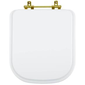 Tampa de Vaso Sanitário Debba Branco para bacia Roca com ferragem dourada é a escolha perfeita para seu banheiro trazendo beleza e praticidade. Este produto Tampa de Vaso Sanitário é produzido em MDF com diversas camadas de pintura laqueada, com acabamento brilhante e ferragem metálica dourada que não enferruja. É compatível para uso em vaso sanitário com ou sem caixa acoplada. Instalação rápida e fácil, acompanham os parafusos de fixação e basta apenas uma chave de fenda para montar. Entrega garantida e rastreada com embalagem dupla reforçada. Cor: Branco Distância entre centros dos furos da louça: 15cm Acabamento: brilhante Dicas: Itens inclusos: assento e tampa em madeira MDF com pintura laqueada, ferragem metálica e embalagem dupla reforçada. Limpeza: recomenda-se a limpeza com pano úmido e sabão neutro e não utilizar produtos abrasivos ou químicos. Instalação: Sem desmontar o produto, posicione sobre o vaso sanitário e encaixe os dois parafusos com as borrachas pretas dentro dos furos do vaso. Aperte com a chave de fenda no sentido horário até ficar firme. Importante: este anúncio inclui somente o produto conforme descrição acima. Todos os elementos decorativos das fotos não estão inclusos. Observação: O código 6LPF gravado na louça sanitária corresponde ao fluxo de água de uma descarga e não indica o modelo da mesma. Ean: 7899983674383