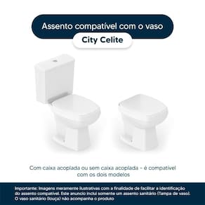 Detalhes e Cuidados Especiais: * Cor: Branco * Compatibilidade: Modelo Cityda marca Celite* Conteúdo da Embalagem: Assento sanitário, parafusos de fixação e instruções de instalação. * Fabricante do Assento Sanitário: Pontto Lavabo (enviado na caixa conforme foto no anúncio).