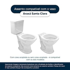 Instalação Simples e Rápida: Com todos os parafusos e componentes necessários inclusos, a instalação é rápida e descomplicada. Seu novo assento estará pronto para uso em questão de minutos. Desenvolvido especificamente para o modelo Araxa da marca Santa Clara, com ou sem caixa acoplada, proporciona um encaixe perfeito, oferecendo estabilidade e conforto durante o uso.