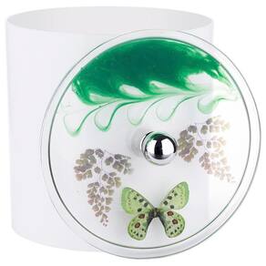 Kit contendo 1 assento sanitário decorado borboleta na cor verde esmeralda e 1 lixeira na mesma decoração. Escolha perfeita para completar seu banheiro. Assento Sanitário em resina de poliester, material semelhante ao acrílico só que mais robusto / resistente. É totalmente impermeável. O assento (parte onde senta) tem marmorizado na cor verde esmeralda. A tampa é transparente com decoração de avenca com borboleta. A decoração é uma transparência que fica dentro da resina, não sai e não desbota com a limpeza diária. Lixeira decorada com tampa em resina de poliester, no mesmo material e decoração do assento sanitário. O corpo da lixeira é em plástico polipropileno, muito resistente e fácil de limpar. Medidas do assento sanitário: 43cm comprimento x 38cm largura x 15cm distancia entre os parafusos. É compatível com vasos sanitários de modelo convencional / oval / universal. Medidas da lixeira: 20cm altura x 20cm largura