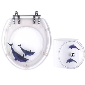 Kit contendo 1 assento sanitário decorado Golfinhos e 1 lixeira na mesma decoração. Escolha perfeita para completar seu banheiro. Assento Sanitário em resina de poliester, material semelhante ao acrílico só que mais robusto / resistente. É totalmente impermeável. O assento (parte onde senta) é transparente em resina translucida. A tampa é transparente com decoração de Golfinhos. A decoração é uma transparência que fica dentro da resina, não sai e não desbota com a limpeza diária. Lixeira decorada com tampa em resina de poliester, no mesmo material e decoração do assento sanitário. O corpo da lixeira é em plástico polipropileno, muito resistente e fácil de limpar. Medidas do assento sanitário: 43cm comprimento x 38cm largura x 15cm distancia entre os parafusos. É compatível com vasos sanitários de modelo convencional / oval / universal. Medidas da lixeira: 20cm altura x 20cm largura Ean: 7899983616864