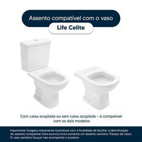 Compatível com o vaso sanitário Celite modelo Life com ou sem caixa acoplada.