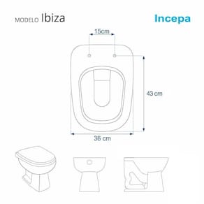 Este assento sanitário é compatível para uso em vaso sanitário Incepa modelo Ibiza com ou sem caixa acoplada.