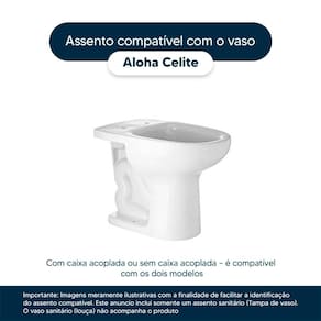 Instalação Simples e Rápida: Com todos os parafusos e componentes necessários inclusos, a instalação é rápida e descomplicada. Seu novo assento estará pronto para uso em questão de minutos. Desenvolvido especificamente para o modelo Aloha da marca Celite, com ou sem caixa acoplada, proporciona um encaixe perfeito, oferecendo estabilidade e conforto durante o uso.