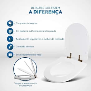 Itens inclusos: assento e tampa em madeira MDF com pintura laqueada. Ferragens na cor Marrom em alumínio anodizado muito resistente, não oxidam e não enferrujam.