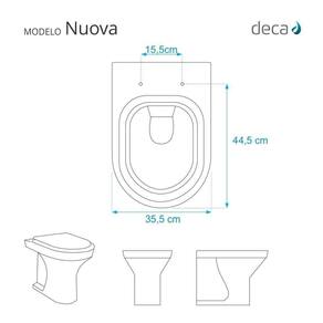 Este assento sanitário é compatível para uso em vaso sanitário Deca modelo Nuova com ou sem caixa acoplada.