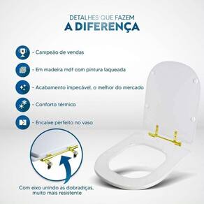 Durabilidade e Resistência: Fabricado em MDF com camadas de pintura laqueada, este assento oferece não apenas beleza, mas também conforto térmico e alta resistência. Seu acabamento impecável adiciona um toque de classe ao seu banheiro.