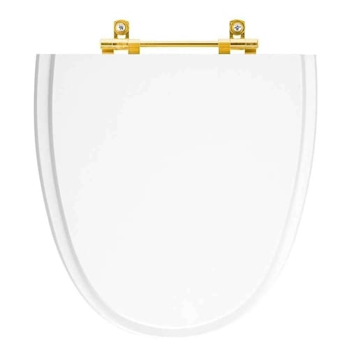 Tampa De Vaso Laqueado Up Branco Para Bacia Celite Com Ferragem Dourada
