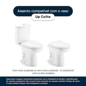 Instalação Simples e Rápida: Com todos os parafusos e componentes necessários inclusos, a instalação é rápida e descomplicada. Seu novo assento estará pronto para uso em questão de minutos. Desenvolvido especificamente para o modelo Up da marca Celite, com ou sem caixa acoplada, proporciona um encaixe perfeito, oferecendo estabilidade e conforto durante o uso.