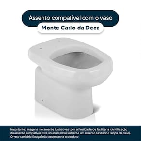 Instalação Simples e Rápida: Com todos os parafusos e componentes necessários inclusos, a instalação é rápida e descomplicada. Seu novo assento estará pronto para uso em questão de minutos. Desenvolvido especificamente para o modelo Monte Carlo da marca Deca, com ou sem caixa acoplada, proporciona um encaixe perfeito, oferecendo estabilidade e conforto durante o uso.