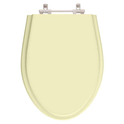 Este assento de vaso sanitário Absolute Bege Claro (Bone) é produzido em resina maciça de poliéster. O poliéster é uma resina semelhante ao acrílico, só que mais robusta / resistente. Por isso, é totalmente impermeável, pode ser lavado com água à vontade. Fácil de limpar. Não acumula sujeira.