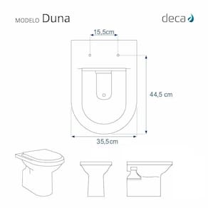 Compatível para uso em vaso sanitário Deca modelo Duna com ou sem caixa acoplada.
