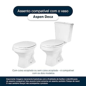 Detalhes e Cuidados Especiais: * Cor: Branco * Compatibilidade: Modelo Aspen da marca Deca * Conteúdo da Embalagem: Assento sanitário, parafusos de fixação e instruções de instalação. * Fabricante do Assento Sanitário: Pontto Lavabo.