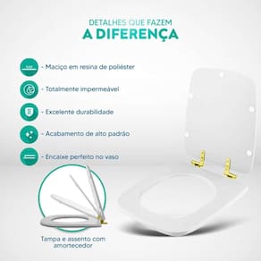 Durabilidade e Resistência: Fabricado em resina maciça de poliéster, este assento sanitário é altamente resistente e totalmente impermeável.