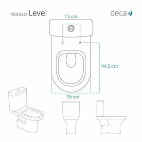 Compatível para uso em vaso sanitário Deca modelo Level com ou sem caixa acoplada.