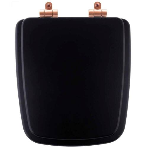 Tampa de Vaso Poliéster Com Fechamento Lento Boss Matte Black (Preto Fosco) para Louça Incepa com Ferragem Rose Gold