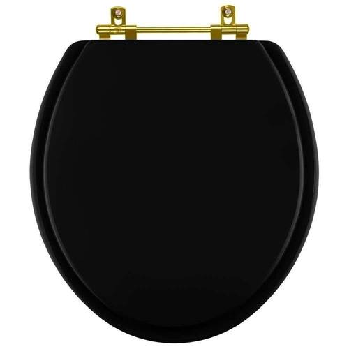 Tampa De Vaso Poliéster Convencional Preto Para Bacia Celite Com Ferragem Dourada A Tampa de Vaso Poliéster Convencional Preto para bacia Celite com Ferragem Dourada é a opção ideal para quem busca combinar funcionalidade com elegância em seu banheiro. Elegância e Diferenciação: Um design refinado e diferenciais de alto padrão. Com acabamento de excelência e ferragens em alumínio anodizado na cor Dourada que não oxidam nem enferrujam, ele é a combinação perfeita de beleza e durabilidade.