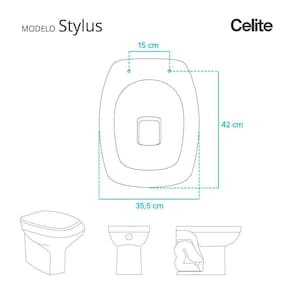 Compatível com o vaso sanitário Celite modelo Stylus com ou sem caixa acoplada.