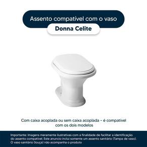 Tampa de Vaso Poliéster Donna Branco - Celite, sofisticação com conforto e durabilidade no seu banheiro. Esta Tampa de Vaso é maciça em Resina de Poliéster, muito resistente e totalmente à prova de água. Com acabamento brilhante e ferragem metálica que não oxida. É compatível para uso em vaso sanitário com ou sem caixa acoplada. É muito rápido e fácil instalar, acompanha parafusos de fixação e com apenas uma chave de fenda é possível instalar no vaso sanitário. Cor: Branco. Distância entre meio dos furos da louça: 15cm. Acabamento: brilhante. Dicas: Itens inclusos: 01 assento sanitário em resina maciça de poliéster Limpeza: fácil limpeza e manutenção. Recomenda-se a limpeza com água e sabão neutro e não utilizar produtos abrasivos ou químicos. Instalação: Sem desmontar o produto, posicione os dois parafusos com borrachas pretas sobre os buracos da bacia sanitária e os encaixe dentro deles. Aperte com a chave de fenda no sentido horário até ficar firme. Importante: este anúncio inclui somente o produto conforme descrição acima. Todos os elementos decorativos das fotos não estão inclusos. Observação: O código 6LPF / 1.6gpf gravado na louça sanitária corresponde ao fluxo de água de uma descarga e não indica o modelo da mesma.