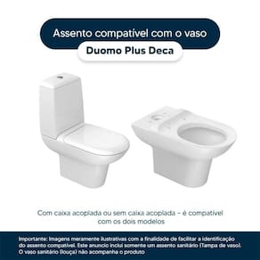 Detalhes e Cuidados Especiais: * Cor: Branco * Compatibilidade: Modelo Duomo Plus da marca Deca * Conteúdo da Embalagem: Assento sanitário, parafusos de fixação e instruções de instalação. * Fabricante do Assento Sanitário: Pontto Lavabo.