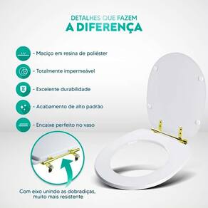 Durabilidade e Resistência: Fabricado em resina maciça de poliéster, este assento sanitário é altamente resistente e totalmente impermeável.