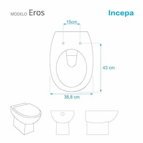 Compatível com o vaso sanitário Incepa modelo Eros com ou sem caixa acoplada.