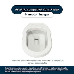 Compatível com o vaso sanitário Incepa modelo Hampton com ou sem caixa acoplada.