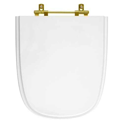 Tampa De Vaso Poliester Ibiza Branco Para Bacia Incepa Com Ferragem Dourada Tampa de Vaso Poliester Ibiza Branco para bacia Incepa Com Ferragem Dourada é a escolha perfeita para seu banheiro. O Assento Sanitário Poliéster é considerado o melhor tipo de assentos sanitários do mercado pelo seu acabamento impecável e excelente durabilidade. Este assento de vaso sanitário Ibiza cor Branco é produzido em resina maciça de poliéster. O poliéster é uma resina semelhante ao acrílico, só que mais robusta / resistente. Por isso, é totalmente impermeável, pode ser lavado com água à vontade. Fácil de limpar. Não acumula sujeira.