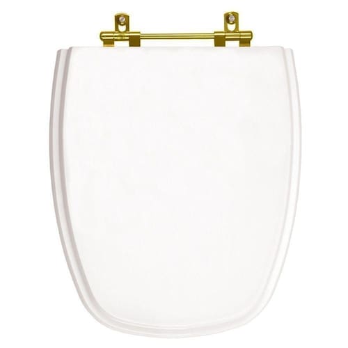 Tampa De Vaso Poliester Monte Carlo Branco Para Bacia Deca Com Ferragem Dourada Tampa de Vaso Sanitário Poliéster Monte Carlo Branco para bacia Deca Com Ferragem Dourada. Conforto, qualidade e elegância para o seu banheiro. Este Assento Sanitário termofixo é fabricado em Resina de Poliéster o que lhe garante total impermeabilidade. Acabamento brilhante e ferragem dourada que não oxida. É compatível para uso em vaso sanitário com ou sem caixa acoplada. Instalação rápida e fácil, acompanha parafusos de fixação e basta apenas uma chave de fenda para instalar no vaso. Entrega garantida e rastreada com embalagem dupla reforçada.