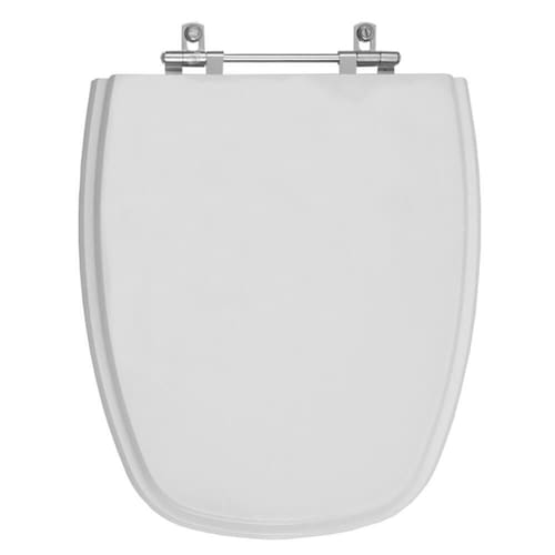 O encaixe do assento sanitário no vaso é feito por uma ferragem metálica que não oxida e não enferruja.
