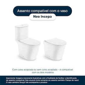 Compatível com o vaso sanitário Incepa modelo Neo com ou sem caixa acoplada.