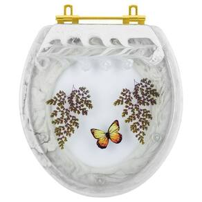 Tampa De Vaso Poliester Oval Branco Decorado Borboleta Amarela Com Ferragem Dourada Tampa de Vaso Sanitário Poliéster Oval Branco Decorado Borboleta Amarela para bacia Deca Com Ferragem Dourada é a escolha perfeita para seu banheiro trazendo beleza e praticidade. Esta Tampa de Vaso é fabricada 100% em Resina Virgem de Poliéster. É impermeável, ultra resistente, tem acabamento brilhante e ferragem dourada que não enferruja. É compatível para uso em louça sanitária com ou sem caixa acoplada. Instalação rápida e fácil, acompanha parafusos de fixação e basta apenas uma chave de fenda para instalar no vaso. Entrega garantida e rastreada com embalagem dupla reforçada. Cor: Branco Decorado Borboleta Amarela.